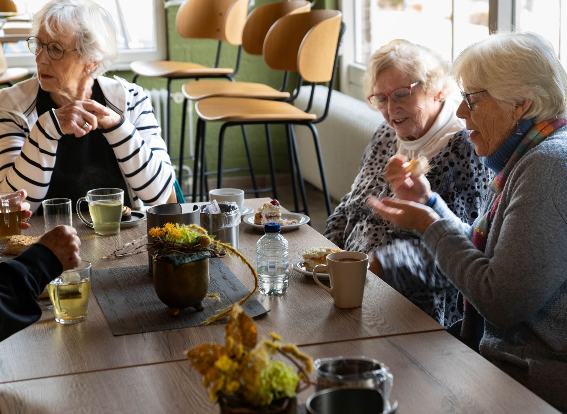 Na dat uur krijgt iedereen bij binnenkomst koffie/thee met gebak.